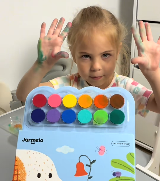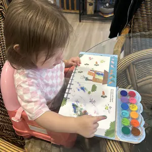 The paints are built into the book - no cups, brushes or spills. Plus it washes out easily so even if they touch their clothes or furniture, it comes right out.